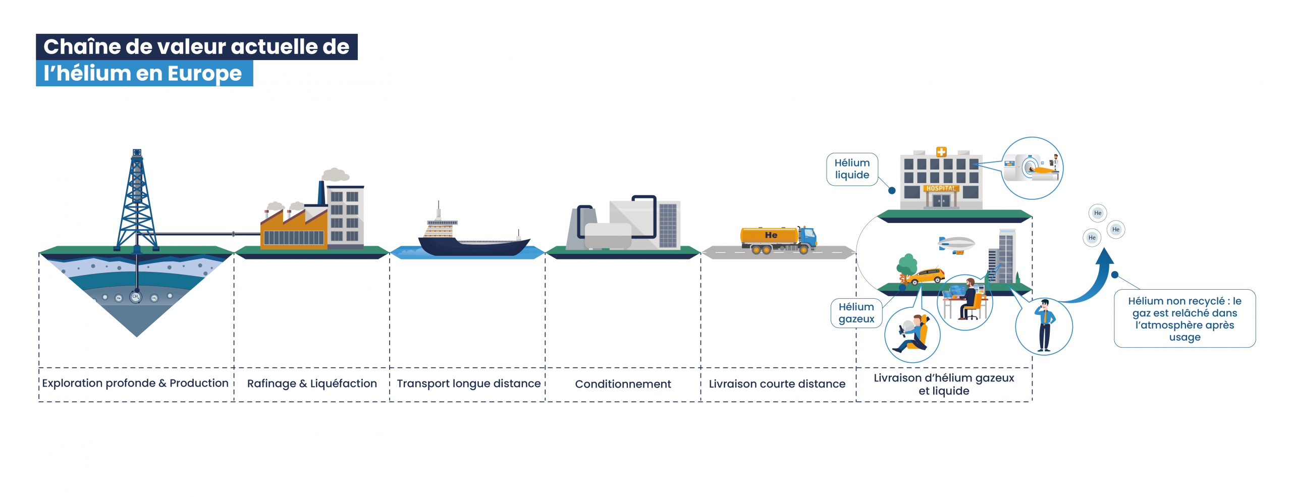 ✔ Le recyclage de l’hélium, afin d’augmenter la disponibilité de cette ressource précieuse et limiter encore davantage les importations longues distances.